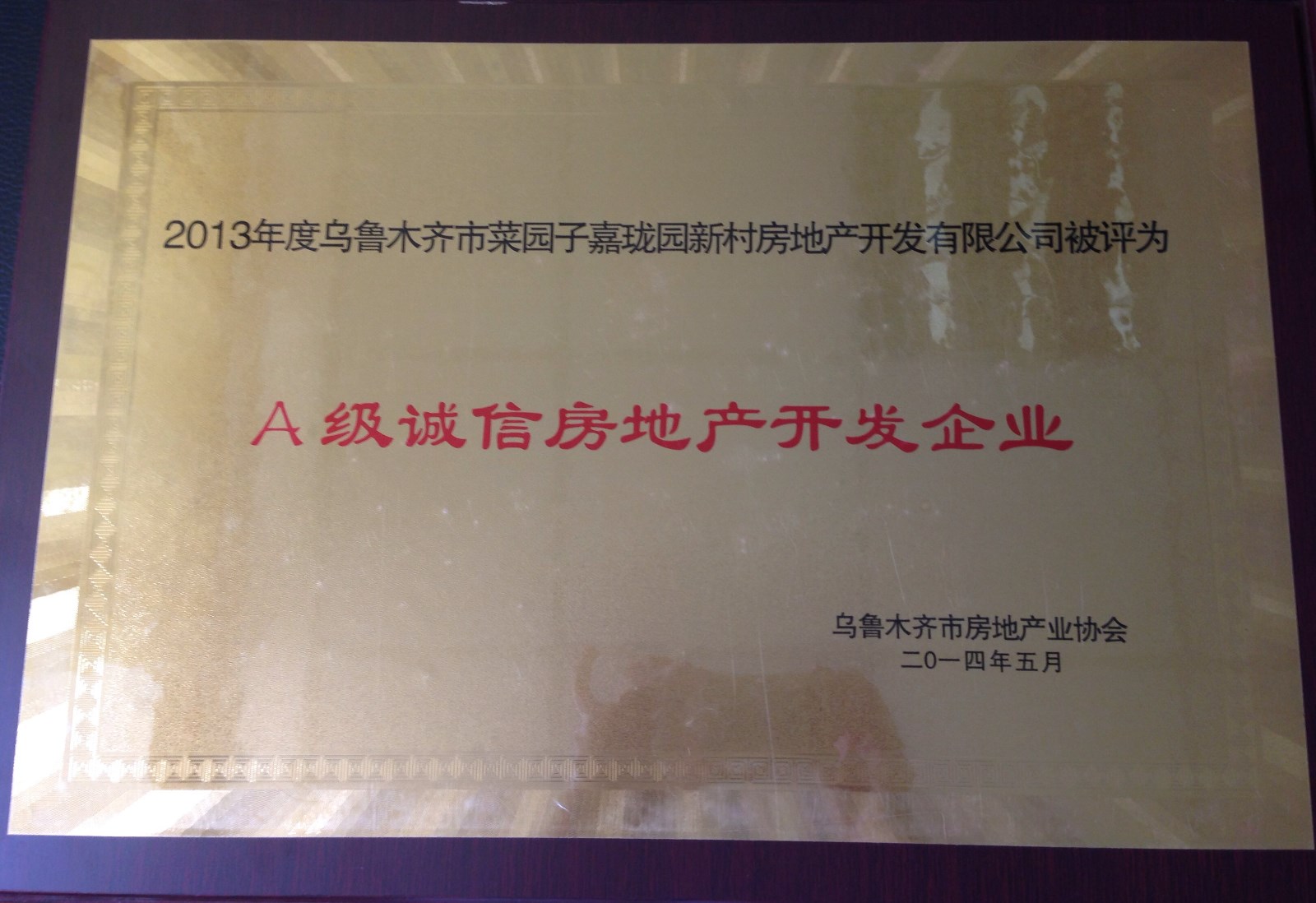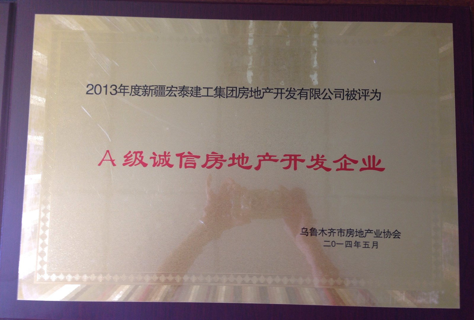 新疆宏泰建工集團(tuán)有限公司、烏魯木齊市菜園子嘉瓏園新村房地產(chǎn)開發(fā)有限公司被評為2013年度A級誠信房地產(chǎn)開發(fā)企業(yè)。
