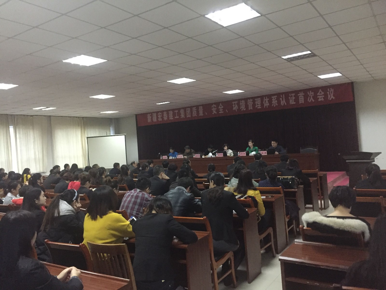 2016年12月13日上午10:00,新疆宏泰建工集團有限公司2016年質量、安全、環(huán)境管理體系認證首次會議在集團公司六樓會議室順利召開,會議由審核組翟鳳梅老師主持,出席本次會議的有集團公司總經(jīng)理李承錫同志、常務副總高四元同志、建安副總趙志會同志、房產(chǎn)副總劉建民同志、工會主席王厚蘭同志,審核組馬洪梅老師、符正岳老師、周文莉老師、寇勇老師及公司全體員工。